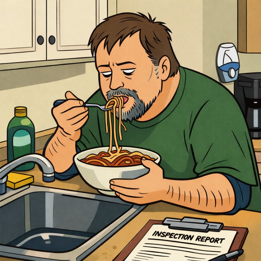 Yesterday was leftover night for dinner, and I thought I was in a fight with my wife. In my head, she had already met with the lawyer that morning, divided the bookshelves, taken the good coffee mugs, filed custody paperwork for the cats, and was telling future friends at dinner parties about the exact moment she realized she could no longer live with me. I ate cold, limp spaghetti noodles while hunched over the kitchen sink and mentally priced studio apartments, drafted explanation speeches for the kids, and pictured myself alone under a threadbare blanket that smelled vaguely of cat.