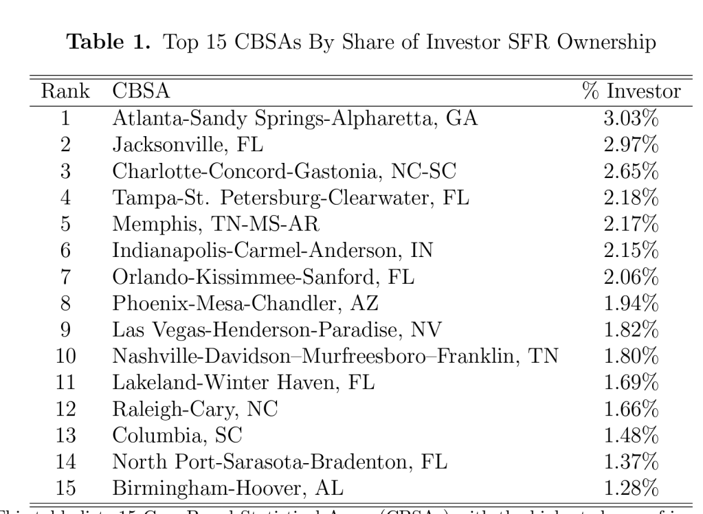 Institutional investors in single-family rental (SFR) houses cause rents in a neighborhood to increase quickly, but their entrance into a