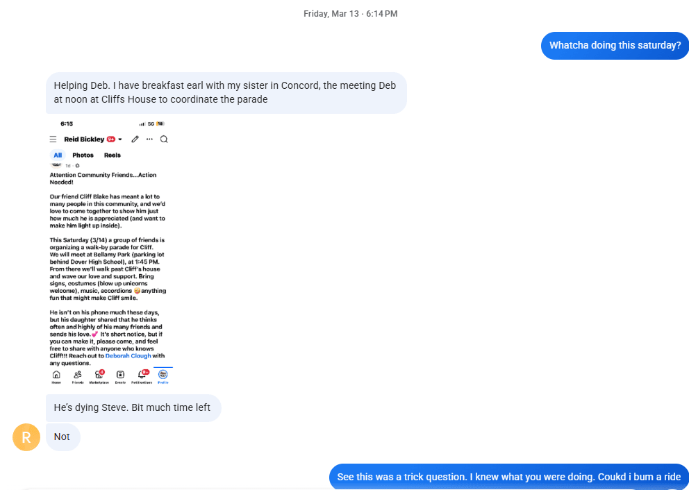 Cliff wasn’t isn’t some phenomenal person. He was funny, always quick with dry wit. He was a little ordinary on first glance. That ordinariness, that ubiquity, was his grace, a thread woven throughout the community, stitching people together.