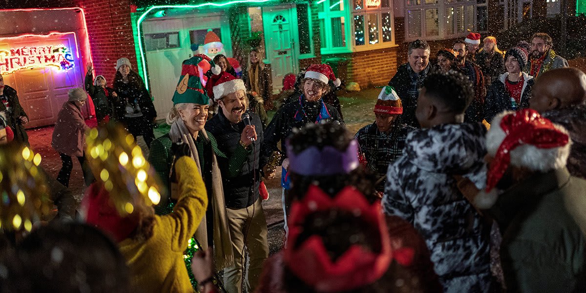 Season 2, episode 4, Carol of the Bells was the Christmas episode. It features a festive, standalone story where Rebecca (owner of the football team) cheers up Ted, Roy the big-time football player, and his girlfriend Keeley search the streets for a dentist, and Higgins football operations hosts international players for a holiday celebration. The whole thing ends on the street, with people singing Baby Please Come Home.