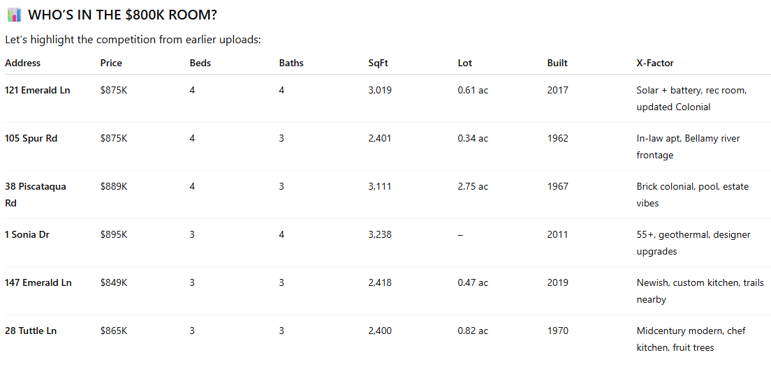 There are clear reasons why 30 Cataract shouldn’t be in the $800k room. We only have 2 bathrooms, for instance. We come up short on square footage. Where’s the first-floor primary suite? We are missing geothermal, solar, or radiant floors.